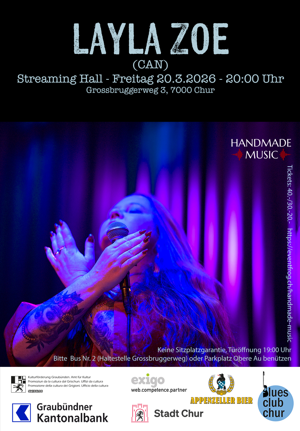 Wenn pure Emotion auf kraftvollen Blues-Rock trifft, steht Layla Zoe auf der Bühne. Mit ihrer außergewöhnlich intensiven Stimme und einer Präsenz, die sofort fesselt, verwandelt sie jedes Konzert in ein mitreißendes Erlebnis.